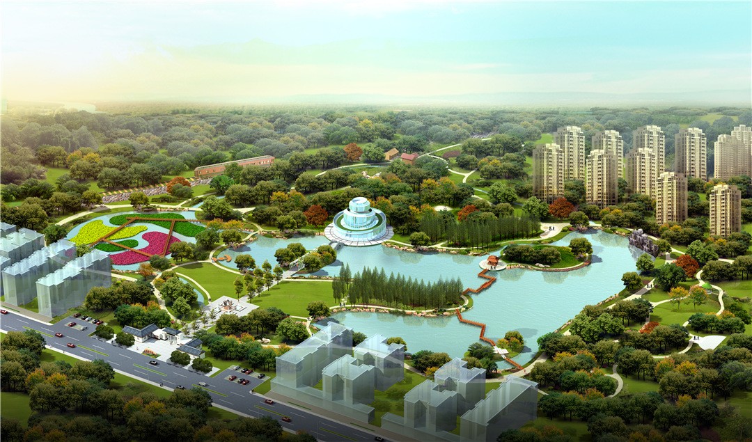 五區(qū):入口服務區(qū)、濱水休閑區(qū)、核心景觀區(qū)、曲水花州景觀區(qū)、密林氧吧休閑健身區(qū)