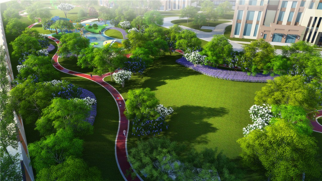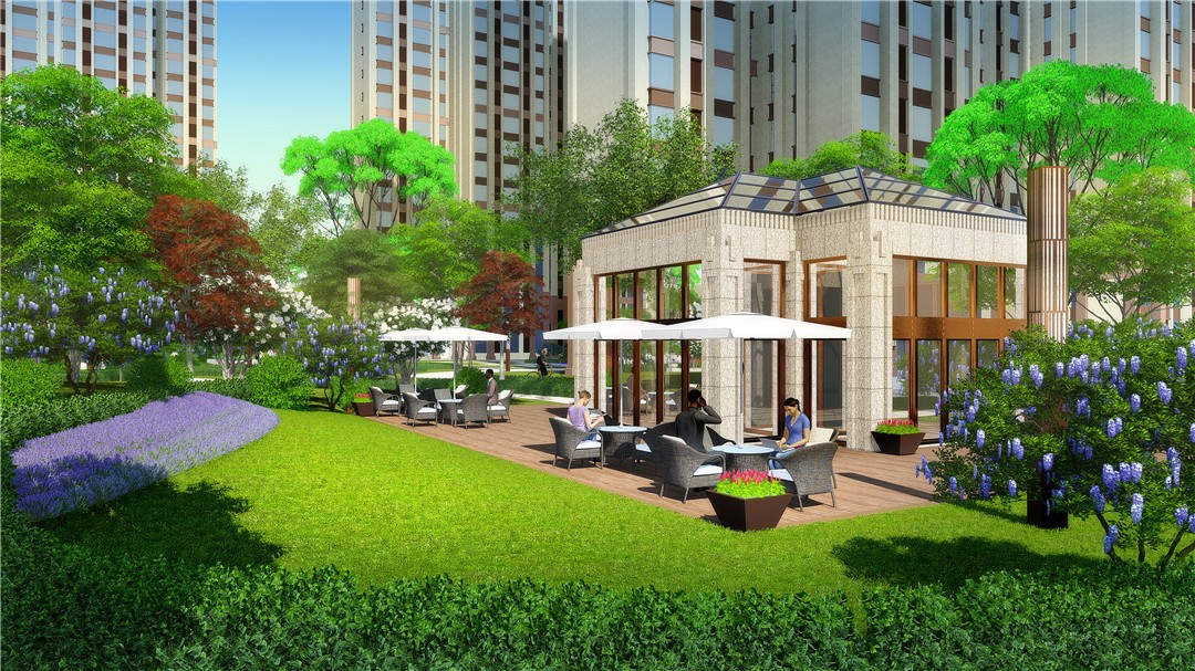 商業(yè)及綜合辦公樓為現代風格,材質為米色石材灰色鋁板結合玻璃幕墻,住宅為ARTDECO風格,材質以米灰色涂料和深棕色石材為主,景觀在材質上與建筑相呼應。